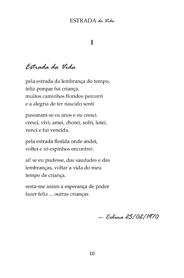 “Estrada da Vida” é um convite à reflexão sobre o tempo, a memória e o sentido da existência. Um livro que emociona, consola e inspira, lembrando que, apesar dos espinhos do caminho, a vida sempre encontra uma forma de florescer em poesia.